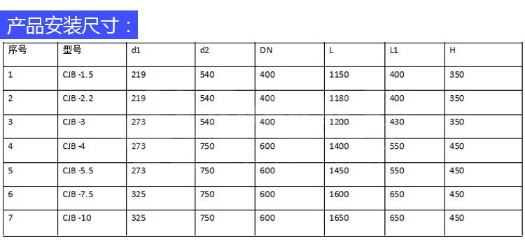 CJB 型侧入式搅拌机俗称穿墙搅拌机广泛应用于化工、水处理、食品、纤维、造纸、石油等行业的工艺过程的搅拌阶段,作用如下:使互溶液体混合均匀;使固体粒子在液相中溶解、离底悬浮或均匀悬浮;使不相溶的另一液相均匀悬浮或充分乳化;强化相间的传质(如吸收等);强化传热等搅拌含有悬浮物的液体;污水、废水、污泥水的混合和均匀;稠化过程;污泥脱水过程;污水池清洁;防止颗粒在池壁和池底的凝结、沉淀;创建水流等。