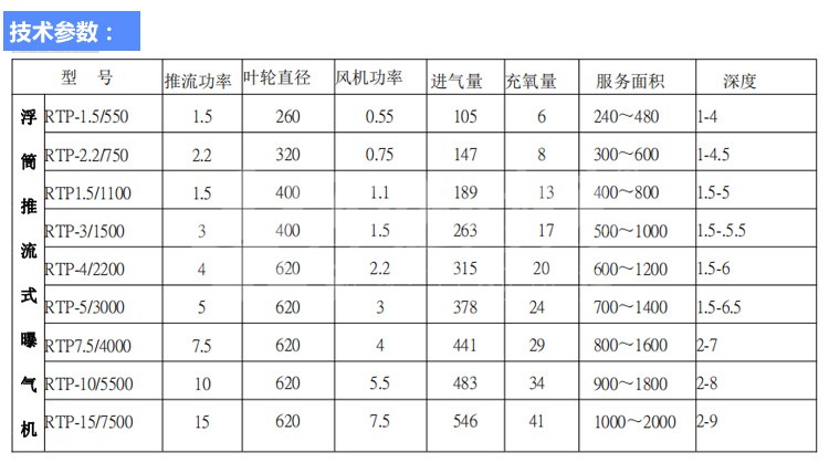 8、适用范围广,不受池形大小限制,可根据需氧量和工艺要求配置机型,可一池一机,也可一池多机。