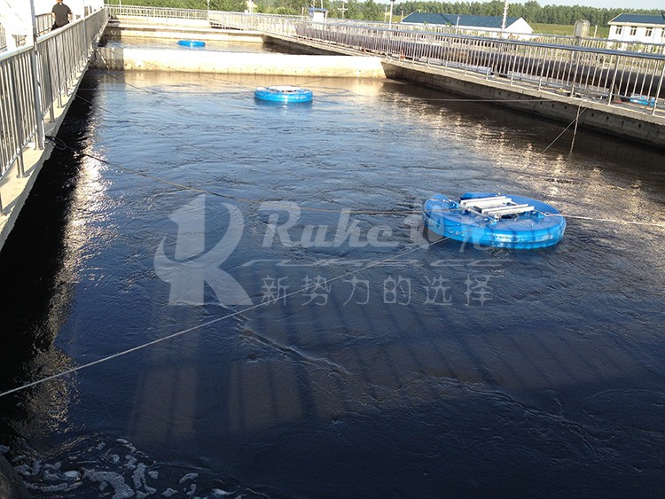 3、浮筒式推流曝气机可以随意的调整工作位置。可以针对有死角处,有缺氧段,堆积活性污泥等等各种复杂条件做相应的位置调整。通过牵动钢丝绳移动设备位置,操作简单,方便。