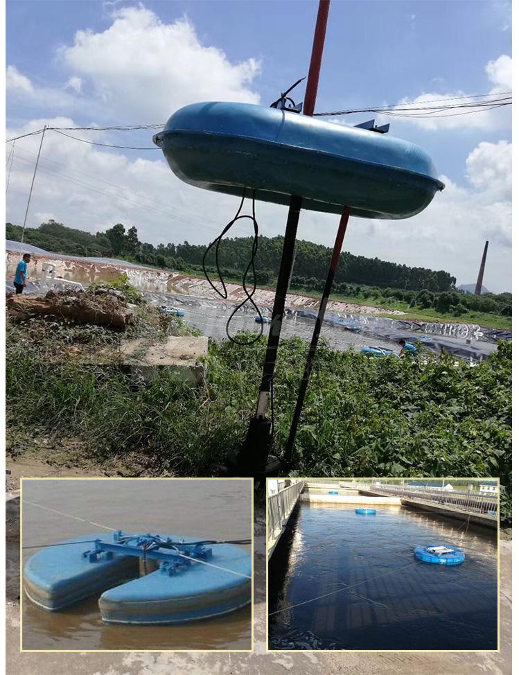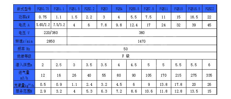 FQB潜水浮动式曝气机是将原NQXB潜水曝气机(电机为潜水电机)靠自重在池底定位的安装形式改为利用双进气管并靠浮圈悬吊在水中浮动的安装形式。现NQXB型曝气机在安装检修时,若污水池中有水,人员无法下池操作,需用吊车伸入池中吊装或排完池中水后搬运,而且这种安装形式必须有坚硬的基础或平台作支撑,经过改进设计后的FQB型曝气机除了在曝气池中工作,还适合在如氧化塘、养鱼池、景观湖、污水渠、河道等软基础环境下工作,从而经改进后设计的FQB则使安装更便捷、省时、省工,并扩展了潜水曝气的使用范围 。