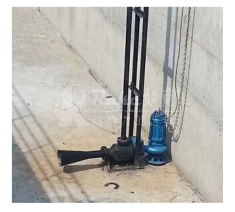 通过潜水泵产生的水流经过喷嘴形成高速水流,在喷嘴周围形成负压吸入空气,经混合室与水流混合,在喇叭形的扩散管内产生水气混合流,高速喷射而出,夹带许多气泡的水流在较大面积和深度的水域内涡旋搅拌,完成曝气,并且其轴功率不随潜没深度的变化而变化,进气量可以调节。正因为如此,射流式曝气机可以在水位变化较大的池中应用。