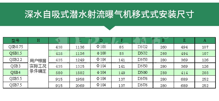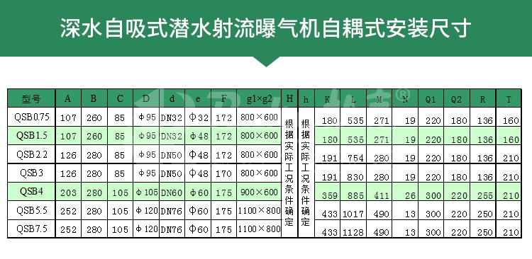 QSB型深水自吸式潜水射流曝气机可在下列条下下正常连续运行: