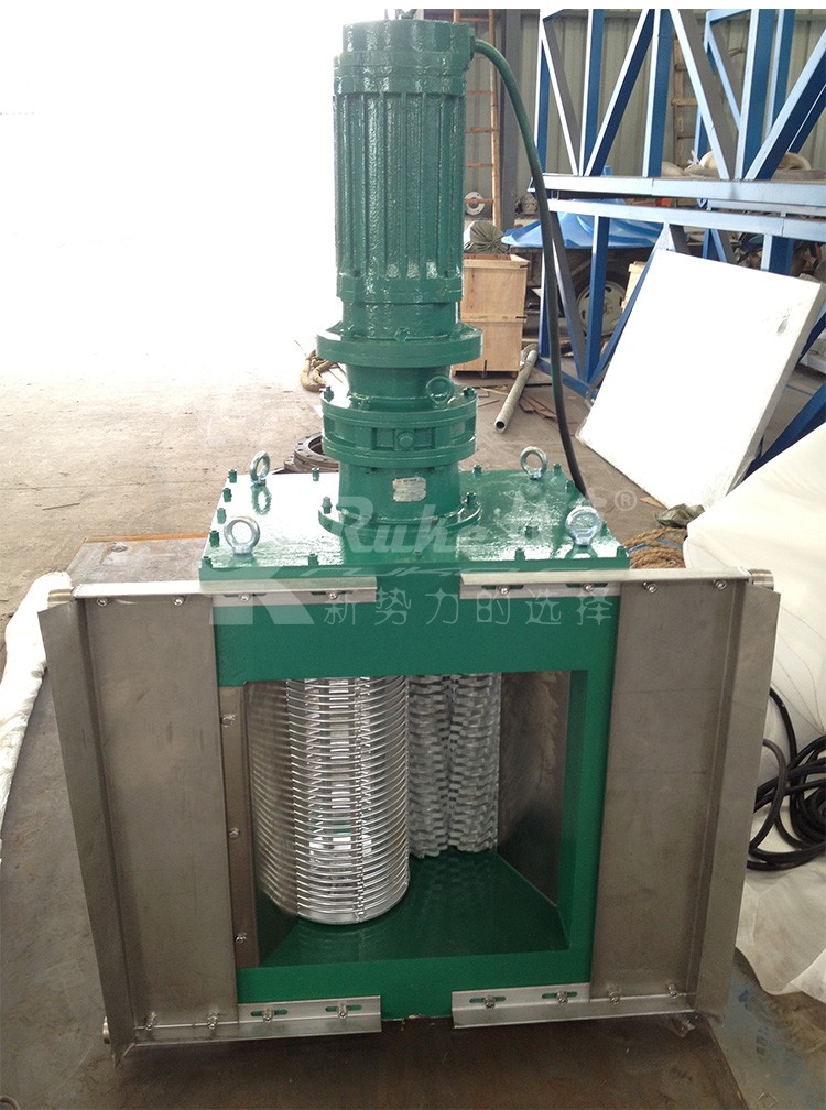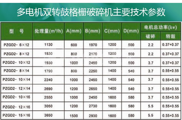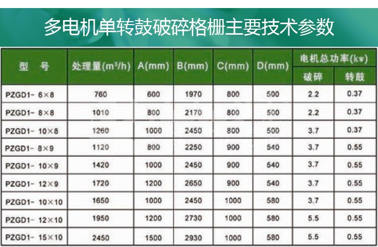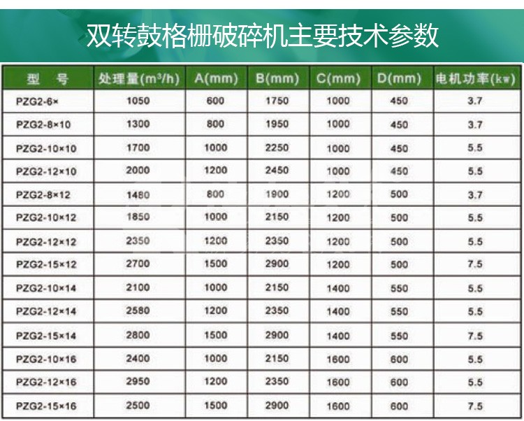 在驱动部件带动下,转鼓格栅的齿耙作圆周运动,将被圆形栅条截留的水中杂物,送至破碎机,而水从格栅中流过。破碎机驱动部件带动主动轴转动,同时主动轴通过精密齿轮带动从动轴转动,使固定于两轴上的铣刀呈逆向旋转,而将固体物咬挤破碎。