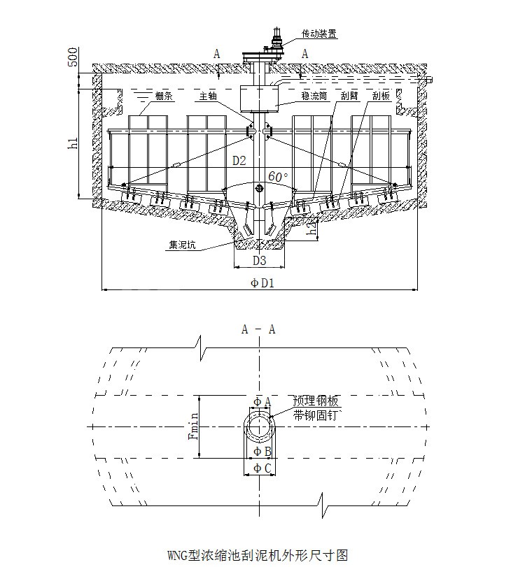 WNG 型浓缩池刮泥机用于污水处理厂重力式污泥浓缩池,将浓缩污泥刮集至池底中心集泥坑,以便进一步作污泥脱水处理。