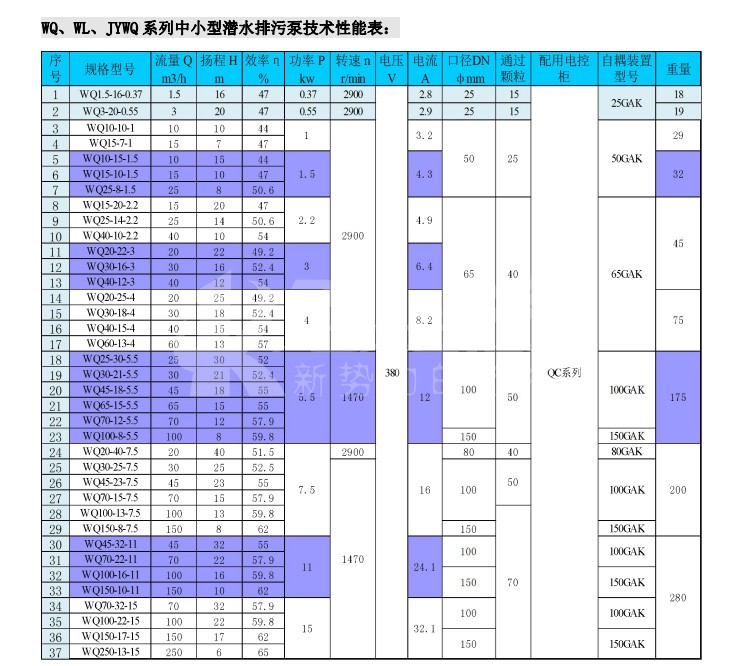 WQ 潜水排污泵,运用于广泛的给排水处理,提升工作效力。