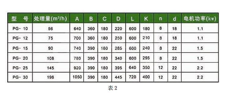 注:1.污水中的渣滓浓度为 30ppm;