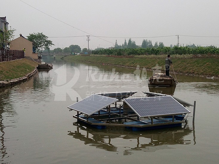 由于河道底部大量沉积淤泥,水体表面累积大量藻类,隔断了空气与水体自然交换,底层处于严重缺氧状态,导致鱼类死亡,水草绝迹,自净能力丧失,如克光伏微孔曝气机利用光伏供电带动风机,进行水体深层微孔增氧,解除水体分层,减少底泥逐渐矿化,恢复水体自净能力。利用光能长期的保持水体的新陈代谢。产品主要用于河道增氧,水体的扩散能力比叶轮式增氧机更好。它采用供气主管与先导气槽同橡胶膜可张孔进行微孔曝气。其结构简单、氧利用率高、性能可靠、气孔不堵塞、污水不倒灌、环向受力均匀、寿命长、安装维修方便、系统价格低廉等特点。是目前曝气器中较经济合理曝气机
